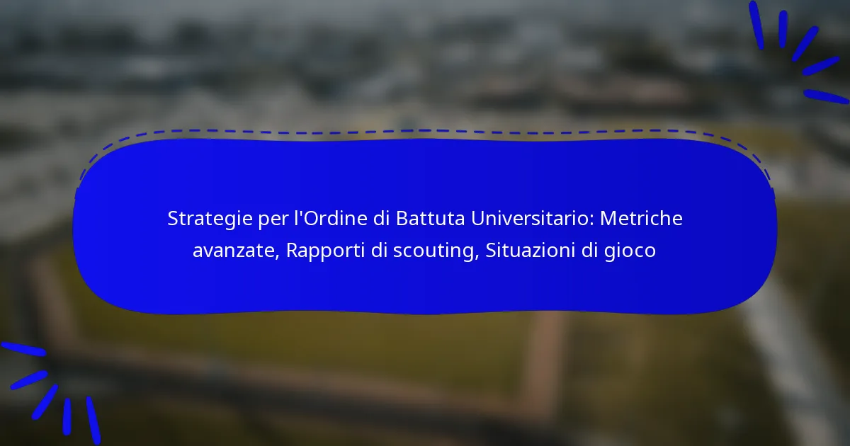 Nel baseball universitario, costruire un ordine di battuta efficace richiede una profonda comprensione di metriche avanzate come la percentuale di arrivi in base e la percentuale di slugging, che aiutano gli allenatori a valutare le prestazioni dei giocatori. I rapporti di scouting migliorano ulteriormente queste strategie rivelando i punti di forza dei giocatori e le debolezze degli avversari, consentendo formazioni su misura. Inoltre, considerare le situazioni di gioco come il punteggio, l’inning e il tipo di lanciatore è essenziale per massimizzare l’efficacia dell’ordine di battuta.