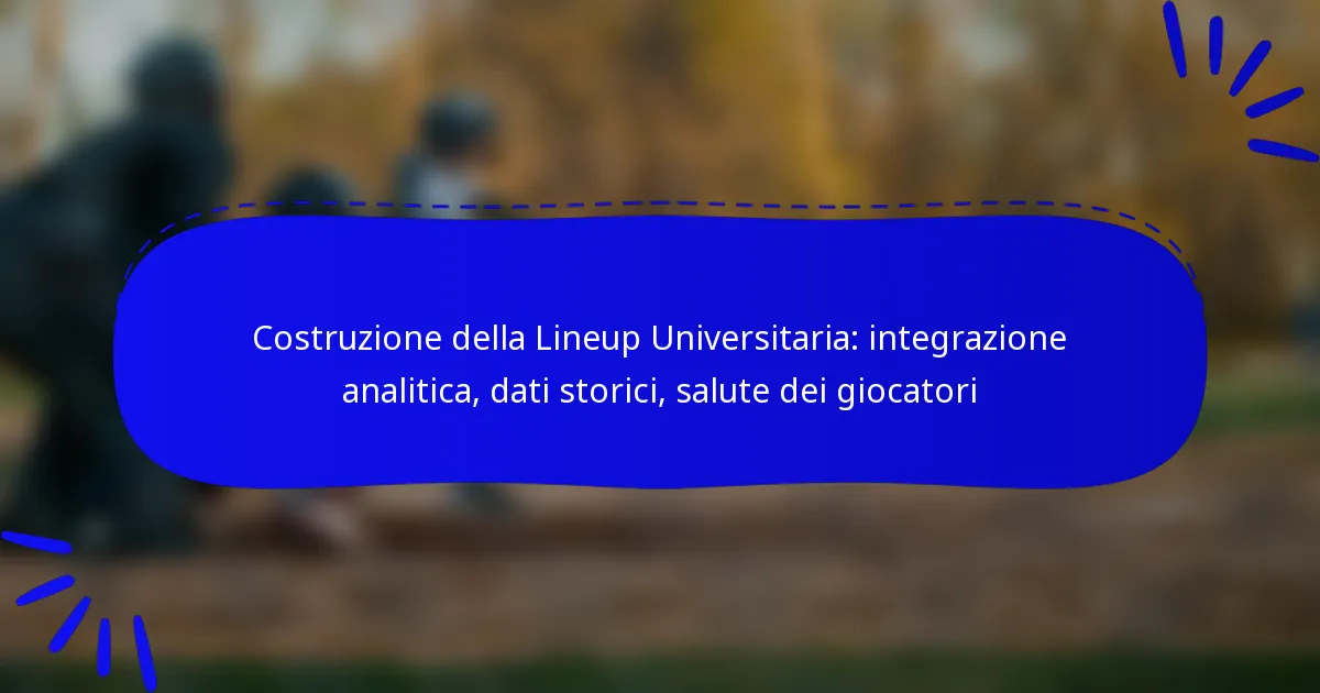 Per ottimizzare l’integrazione delle analisi, dei dati storici e della salute dei giocatori nella costruzione delle formazioni universitarie, le squadre dovrebbero concentrarsi sulla creazione di una strategia coesa che bilanci vari tipi di dati. Questo implica sfruttare le analisi per approfondimenti sulle prestazioni, utilizzare i dati storici per il contesto e valutare le metriche sulla salute dei giocatori per garantire la disponibilità ottimale dei giocatori.