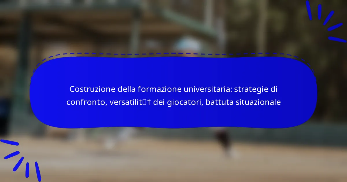 Costruire una formazione di baseball universitario implica una pianificazione strategica per massimizzare le prestazioni della squadra contro gli avversari. Le strategie chiave includono la comprensione delle dinamiche di confronto, l’utilizzo della versatilità dei giocatori e l’implementazione della battuta situazionale in base al contesto del gioco.