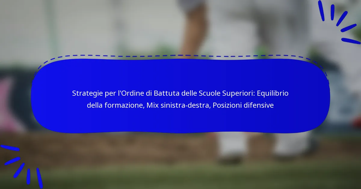 Le strategie di ordinamento del battitore nelle scuole superiori sono essenziali per massimizzare il potenziale offensivo di una squadra, tenendo conto dei punti di forza e delle debolezze dei giocatori. Bilanciando la composizione della formazione, incorporando un mix di battitori mancini e destri e considerando le posizioni difensive, gli allenatori possono creare un ordine di battuta efficace che migliora le prestazioni complessive della squadra e i risultati delle partite.